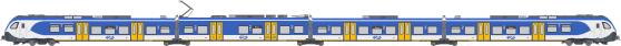 Dit is een moderne stoptrein met een lichtgewicht ontwerp, geschikt voor kortere trajecten met veel stops.